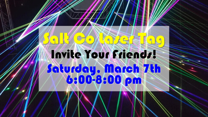 Salt Co Laser Tag - Saturday, March 7th, 6:00 to 8:00 pm - at CrossLife This is open to all middle schoolers. Invite your friends!